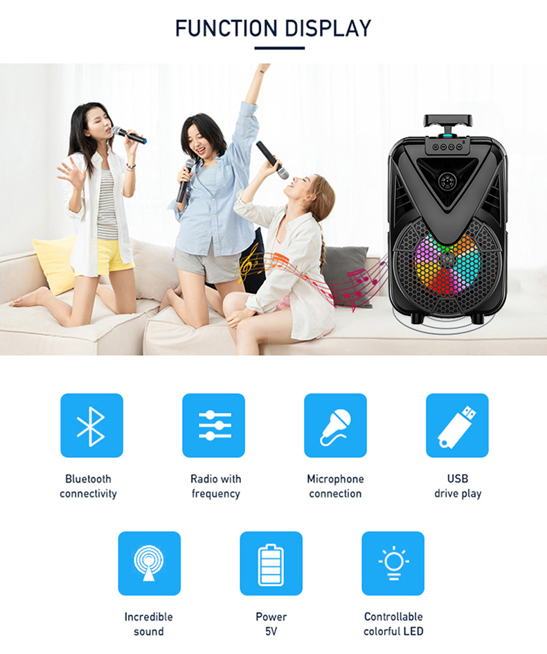 – Suport: Bluetooth / FM / USB Player / MIC /